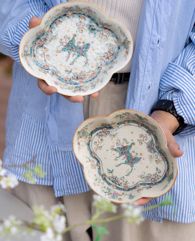 Over-Glaze Butterfly & Flower Begonia Tray – High-End Rustic Ceramic Plate