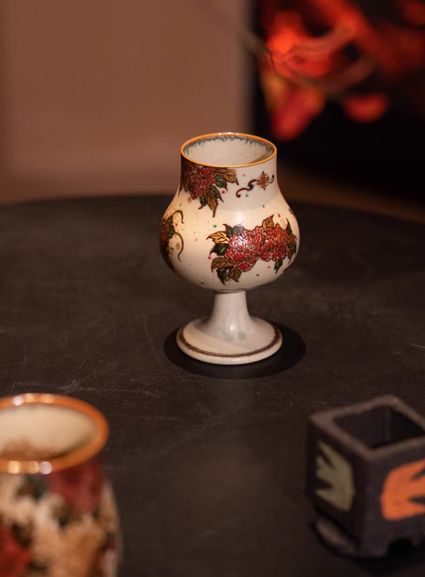 Over-Glaze Peony Footed Goblet & Fish Tail Cup – Unique Vintage Design